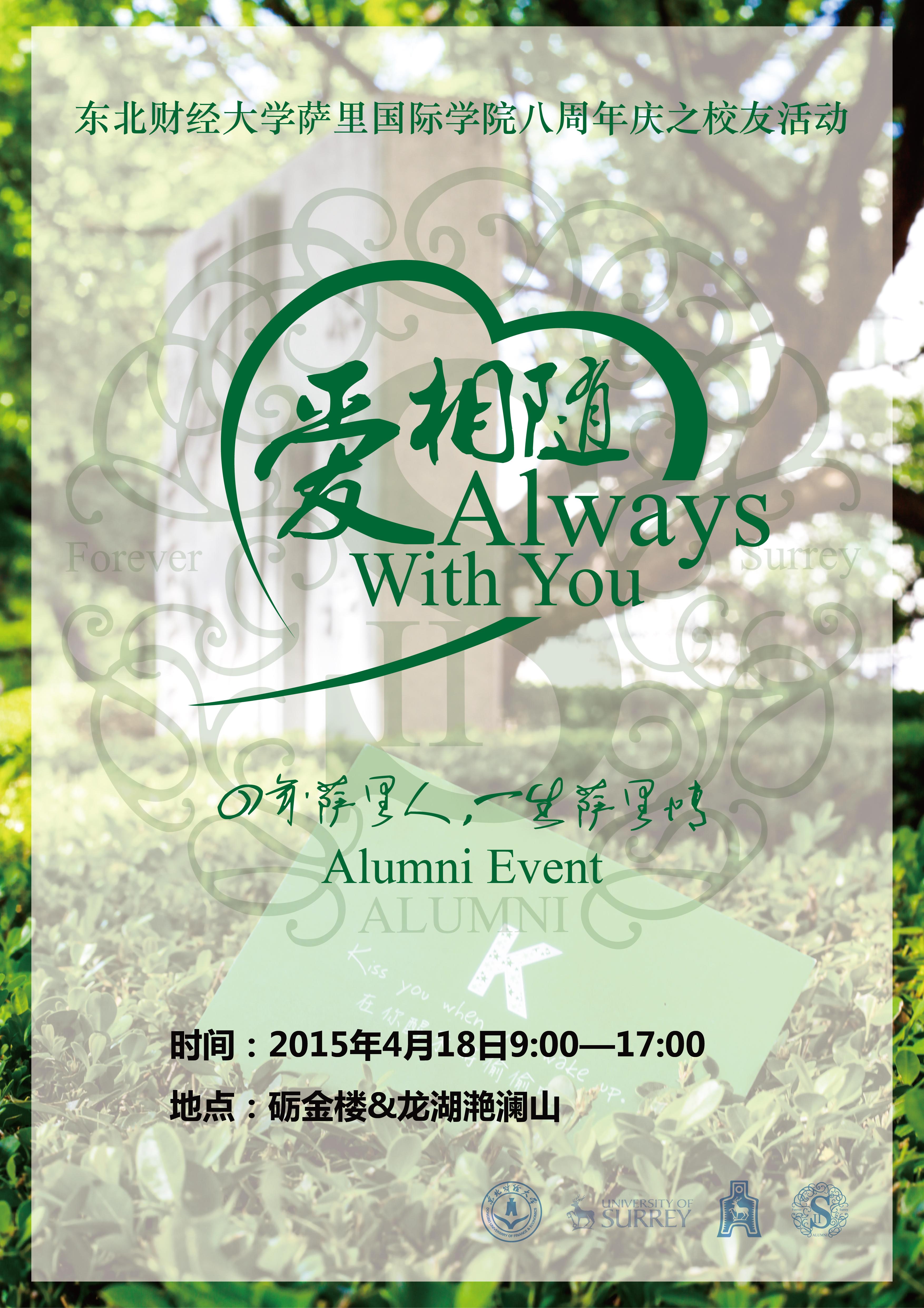 2015 年,萨里国际学院迎来建院八周年纪念。四年萨里人,一生萨里情;萨里国际学院校友中心全体工作人员诚挚的邀请历届校友拨冗光临,共度院庆盛会。 该活动致力于紧密校友与母
