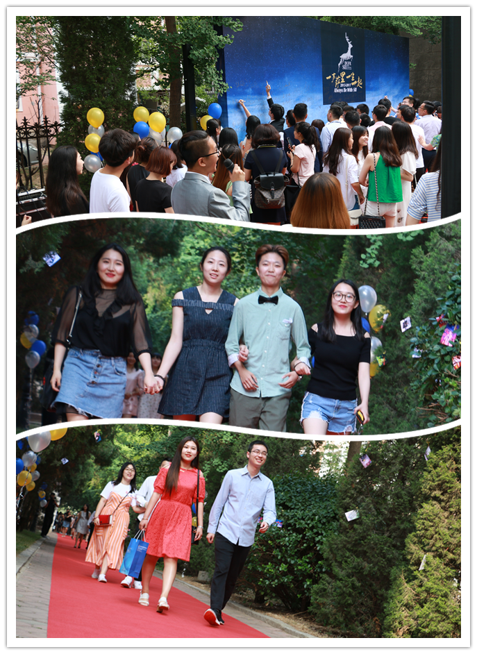 2016年6月20日下午5点整,萨里国际学院2017届毕业生送别活动之红毯秀在励金楼的林荫小道上隆重举行。凉爽的天气,和煦的风好像也在为大四的学长学姐们送别。最后一次走在励金楼外的路上,最后一遍踩着砺金楼外调落了一地的银杏树的叶子,虽是离别,但也充满了欢声笑语。毕业生们穿着各式各样,五彩缤纷的礼服走出了青春别样的风采,并在巨幅蓝色幕布上签上自己的名字。毕业生红毯秀虽然短暂,但每名毕业生都在毕业最后时刻留下最靓丽的身影,定格最美妙的瞬间。