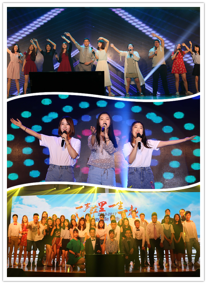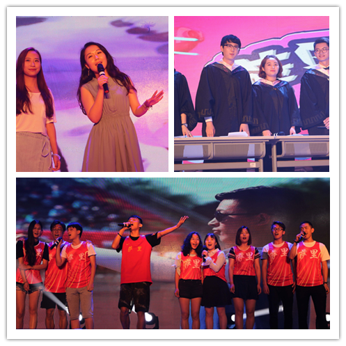 晚会开始前,一段舞蹈视屏在各个大家熟悉的场景中转换,砺金楼内,砺金桥上,四年点滴,一切尽在不言之中。开场舞火力全开,魅力四射,点燃了全场。毕业生张帆的原创歌曲《毕业不分开》,诉说着离别不舍之情。热辣的异域风情肚皮舞的,随着社团负责人的合唱《不说再见》的结束,一首《光辉岁月》,向所有的大四运动员老兵们致敬。一个接一个的节目让观众们应接不暇,给在场的所有人送上了一场精彩绝伦的视听盛宴。视频中老师们的寄语,家长对孩子的印象与期望,一路相伴的记忆接踵而至,年少的回忆历历在目。班楠楠老师与同学合唱了《人间》,旅游管理教研组与同学们给大家带来的歌曲《I believe》。趣味辩论赛《萨里奇葩大会》从毕业生和新生两个视角针对在萨里学习和生活的体验展开了一场妙趣横生的辩论,将全场的氛围带到了高潮。一首首歌曲带来的是对青春的回忆,往日的温情,年少的热血激情,仿佛就在昨日。辅导员合唱的歌曲《重返十七岁》满满的都是师生情谊;毕业生乔凯博同学的原创歌曲《一生一起》,让我们重回往昔。最后,一首《陪你度过漫长岁月》为整场晚会画上了圆满的句号。