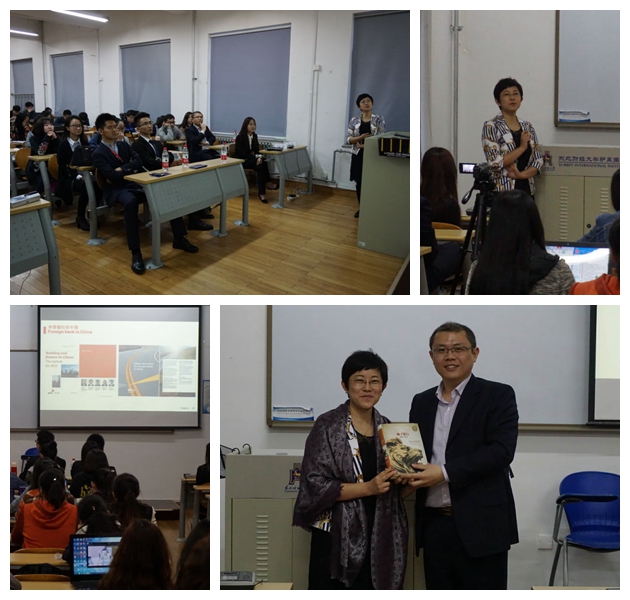 首先,章行长向大家介绍了自己的学习以及从业经历,21年的银行从业经验给予了章行长厚重的行业积淀,在各大银行的工作经历使她对这一行业有了深刻而全面的了解。而在汇丰银行的经历尤其使她印象深刻。章行长详细的为大家介绍了汇丰银行。从汇丰银行的企业目标、客户、社会责任以及相关服务等方面的细致介绍消除了同学们对汇丰的神秘感,带领同学进一步熟悉了外资银行的方方面面。