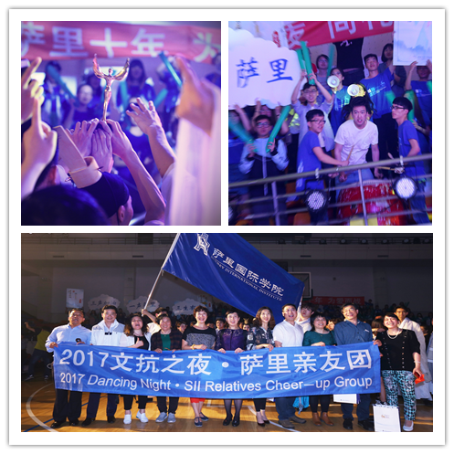 最令人感动的一幕出现在我院全场观众向三位“三年文抗舞者” 致谢,他们是张安琪同学、陈特同学和李芃宇同学。正是他们的坚持和陪伴,带领这支萨里文抗队继续带给我们震撼和感动。大气的萨里,感恩的萨里,凝聚的萨里,超越的萨里!文抗英雄们,今夜萨里为你们沸腾,向你们致敬!